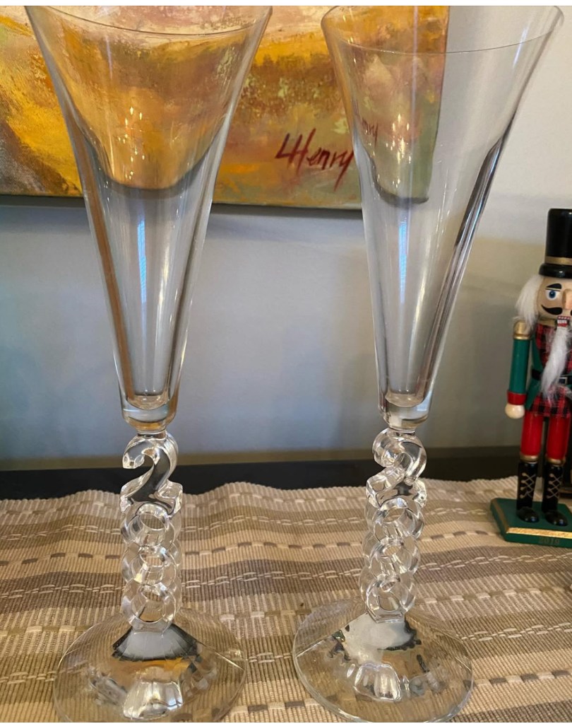 We bought these “year 2000” toasting glasses and stayed home that year… laughing nervously about what might happen at midnight with all the Y2K hysteria that year.